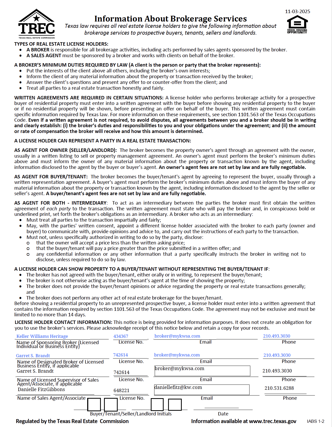 Information About Brokerage Services - Danielle